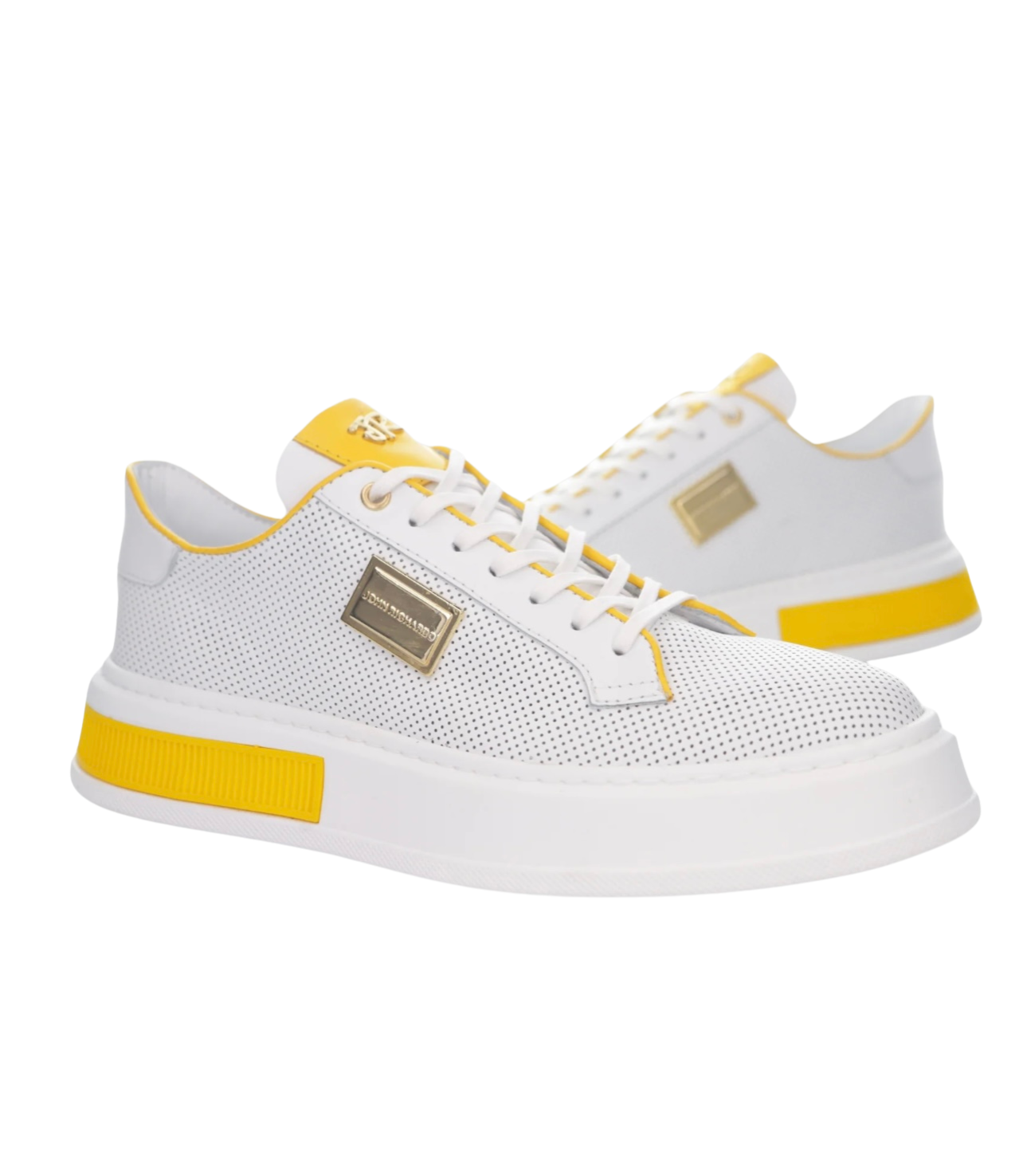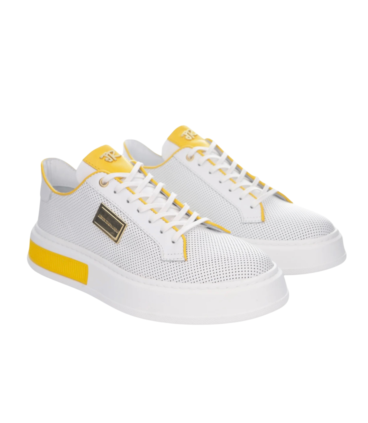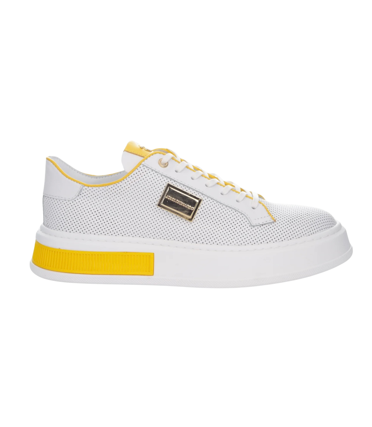White and Yellow Leather Sneaker